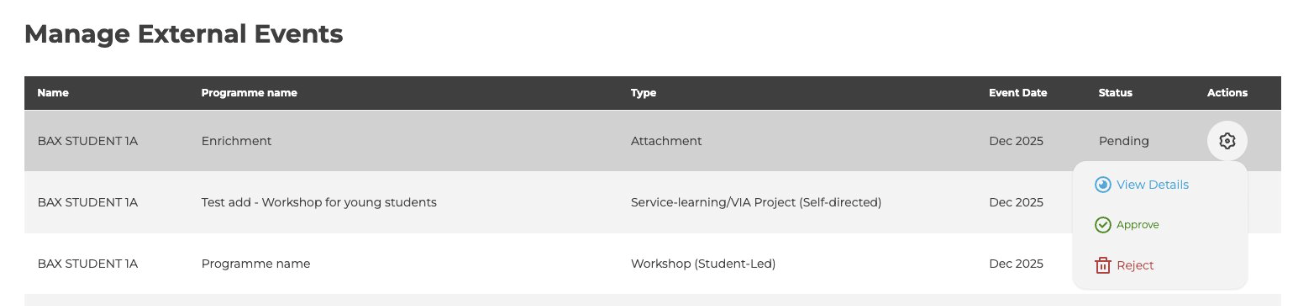 As a form teacher, you play a key role in reviewing your students’ external event submissions before they are added to their official records.
