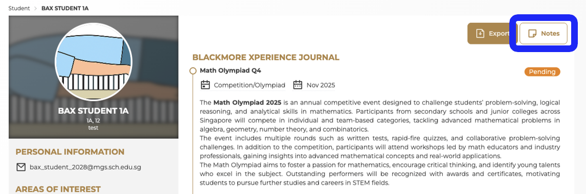 Your notes will be saved as part of the student’s internal record and can be referenced for mentoring, tracking progress, and administrative purposes.
